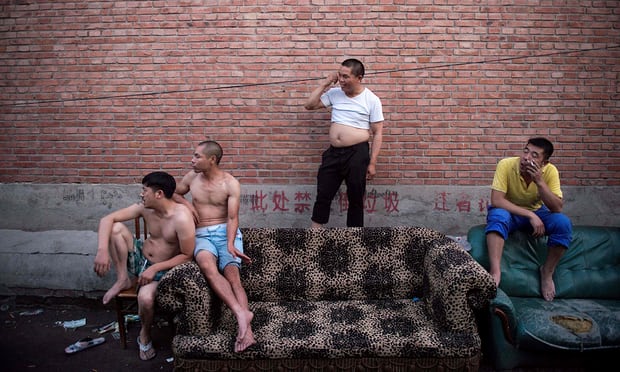 Men in a migrant village on the outskirts of Beijing. China’s male-to-female ratio is 136:100 among single people born since the 1980s. Photograph: Nicolas Asfouri/AFP/Getty Images