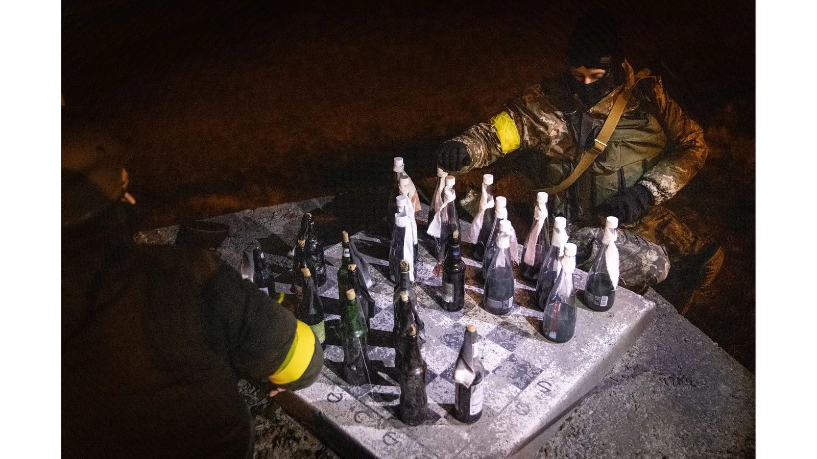 Ukrainian soldiers play chess with Molotov cocktails, Kyiv, Ukraine, March 2022. Selected as one of the top 14 “most striking images of 2022″. Credit: Chris McGrath/Getty Images